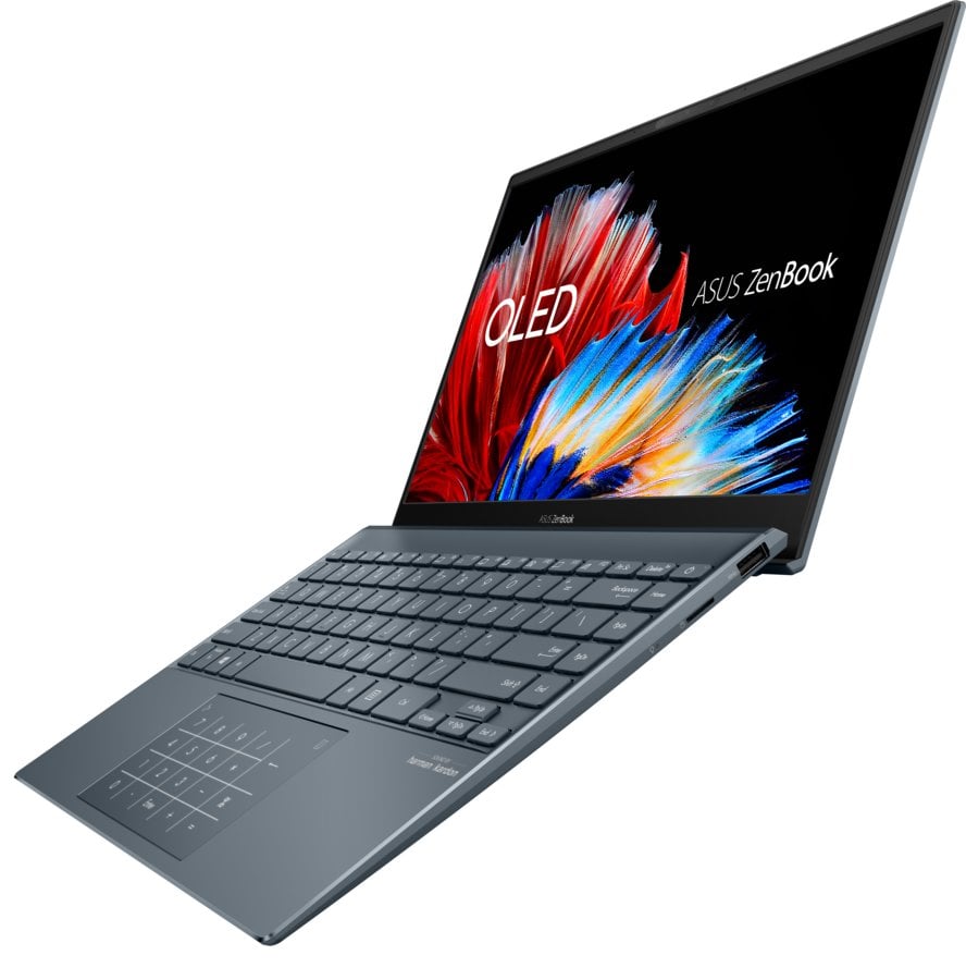 Skärmen är en av Zenbookens stora styrkor – en 13,3-tums OLED-panel som levererar djup svärta, livfulla färger och skarp kontrast. Den höga ljusstyrkan och färgåtergivningen gör den idealisk för både underhållning och arbete där bildkvalitet spelar roll.
