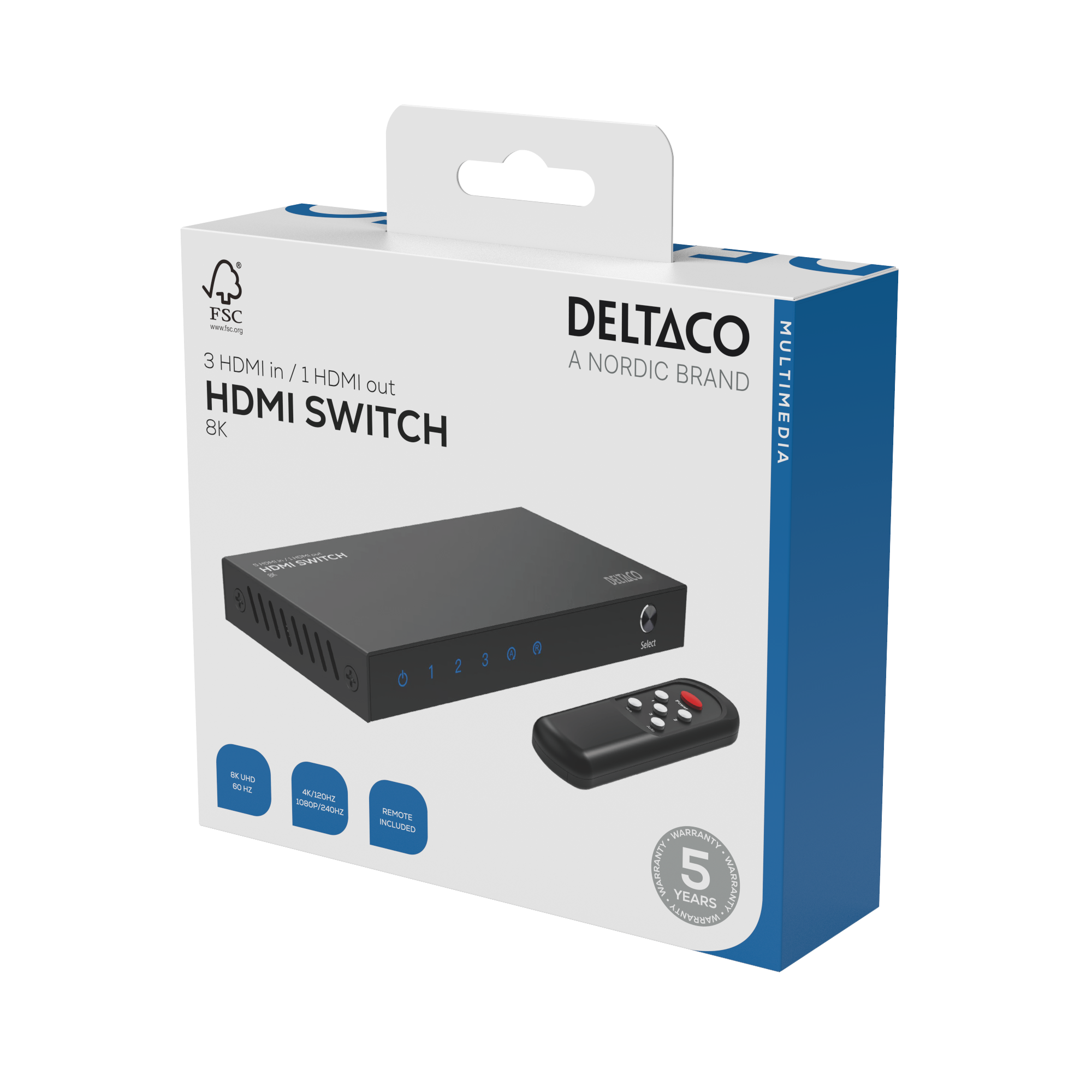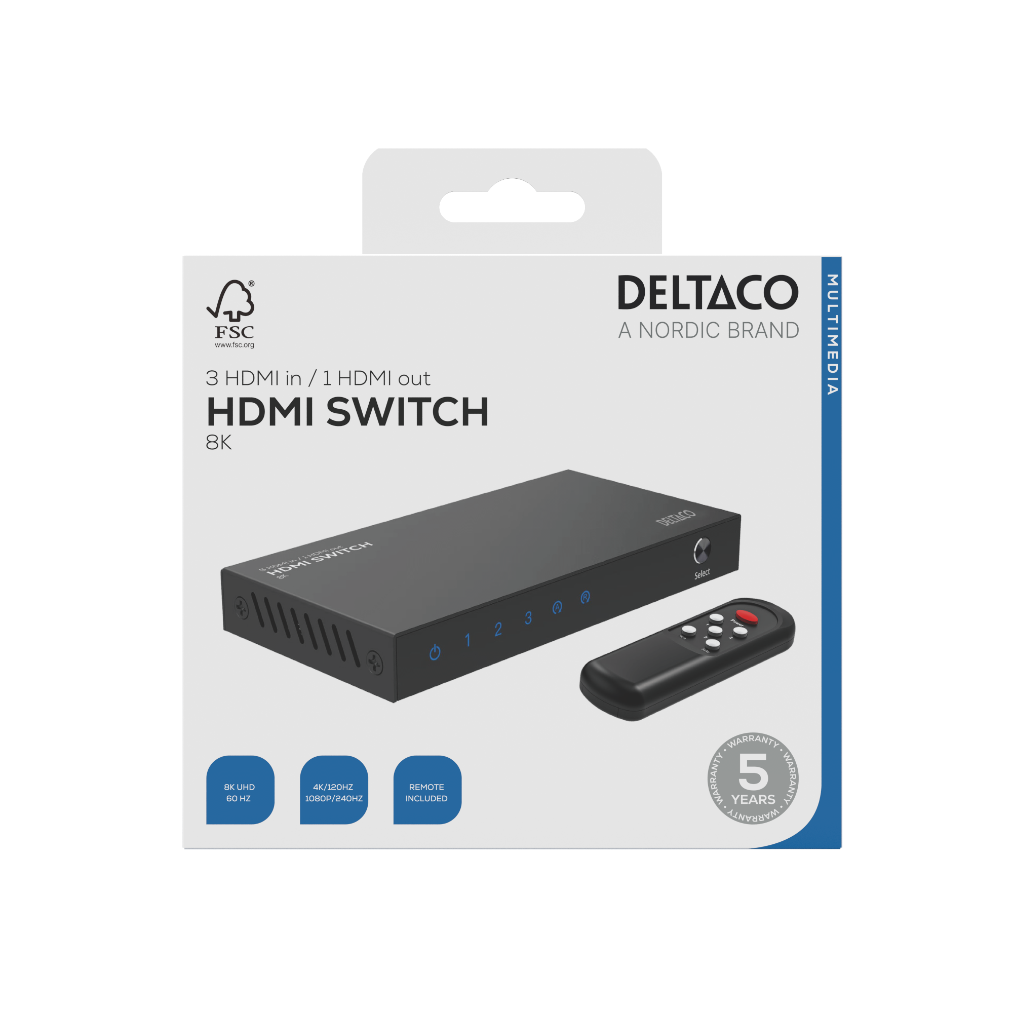 Deltaco HDMI Switch - 3 till 1 - 8K - Fjärrkontroll - Svart