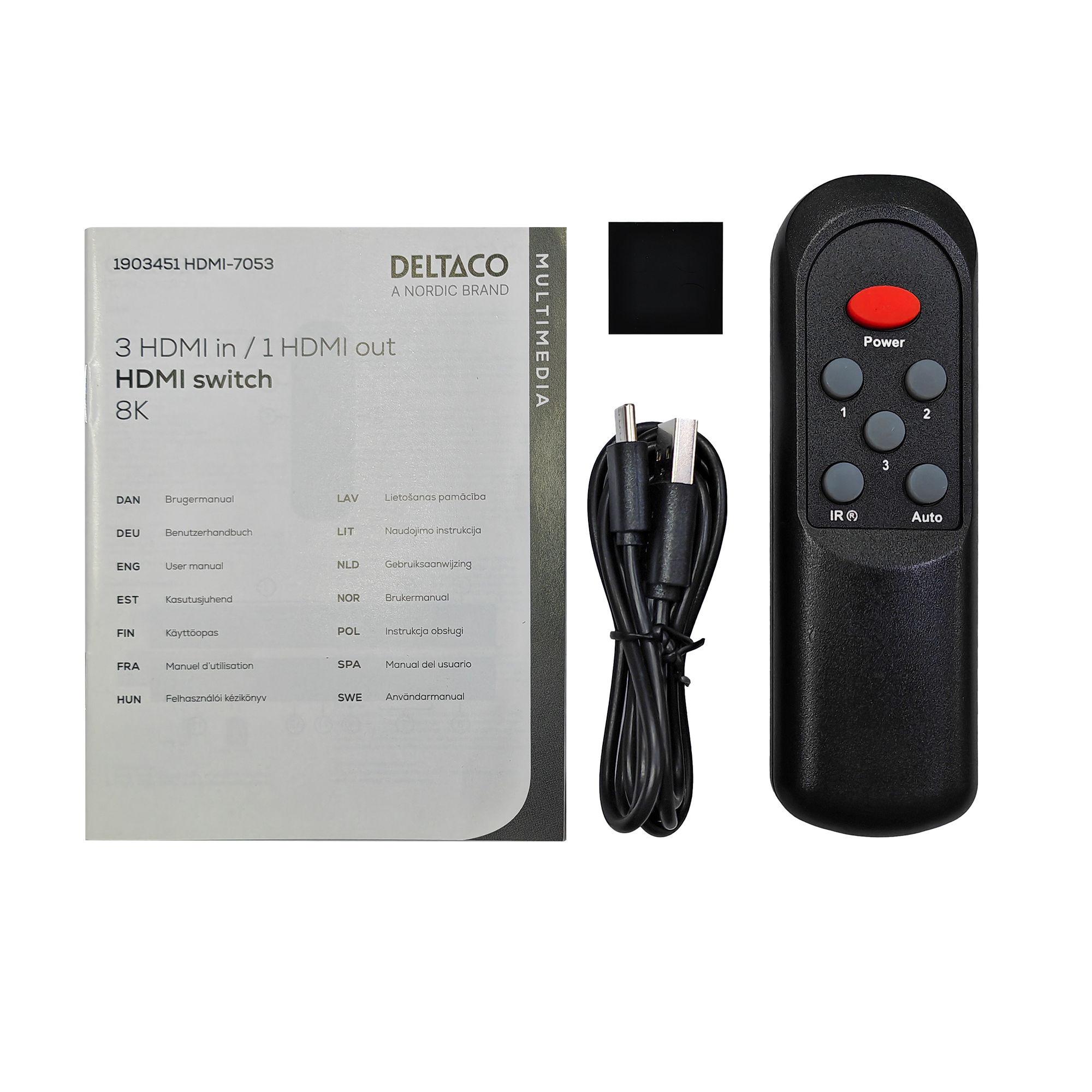 Deltaco HDMI Switch 3 till 1 är en kraftfull och smidig HDMI-switch med stöd för 8K-upplösning, perfekt för dig som vill ansluta flera enheter till en och samma TV eller skärm utan att byta kablar manuellt. Med tre HDMI-ingångar och en HDMI-utgång kan du enkelt växla mellan exempelvis spelkonsol, dator och mediaspelare. Switchen levererar hög bild- och ljudkvalitet och är anpassad för moderna hemmabio- och gamingmiljöer. Stöd för 8K-upplösning ger kristallklar bild med hög detaljrikedom och framtidssäker prestanda. Den medföljande fjärrkontrollen gör det enkelt att byta källa från soffan, samtidigt som manuella knappar på enheten ger flexibel användning. Viktigaste egenskaper:
