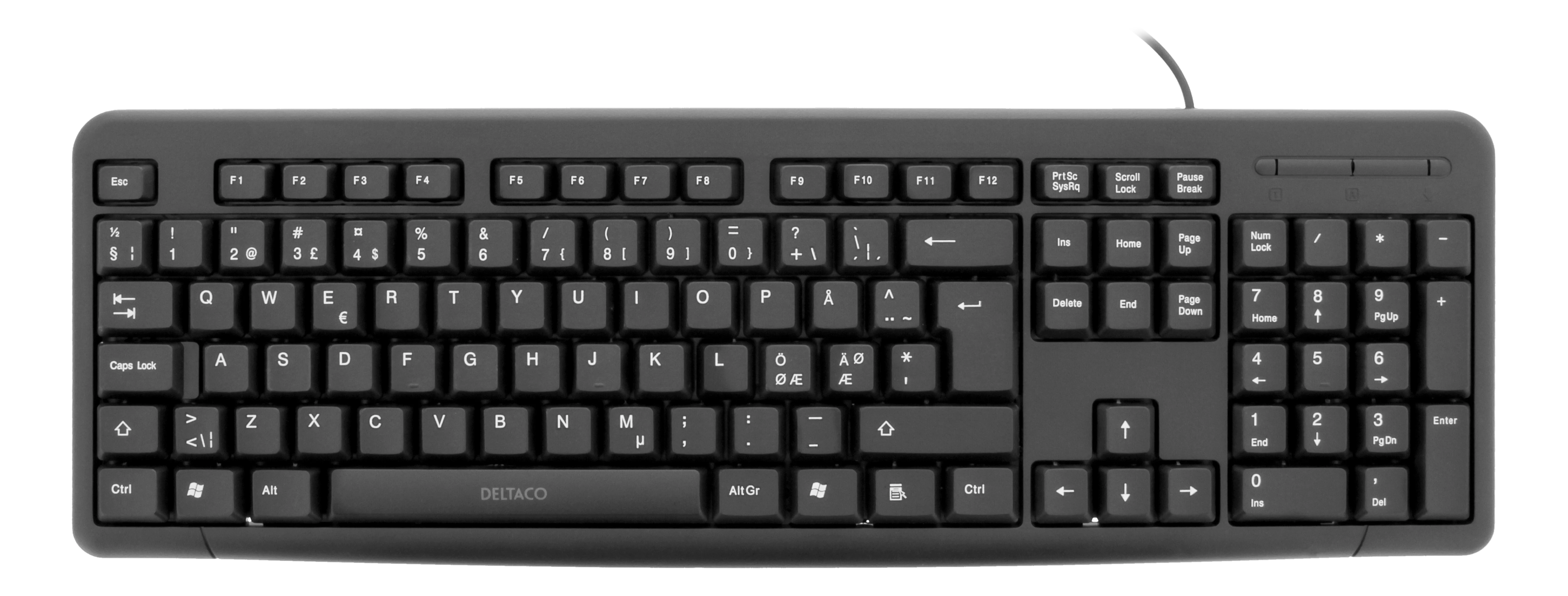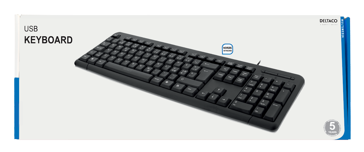 Deltaco Tangentbord Svenskt USB Svart är ett enkelt och pålitligt tangentbord som passar för både hemmabruk och kontor. Här är några av de viktigaste funktionerna: