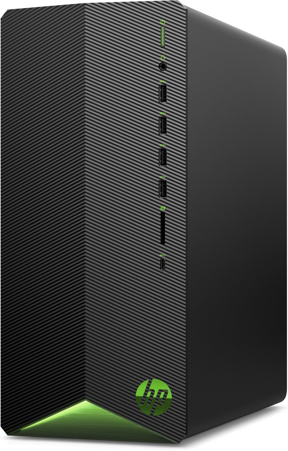 HP Pavilion TG01 har ett stilrent chassi med grön LED-belysning och smart luftflödesdesign för tyst och stabil drift. Tack vare flera USB-portar och interna expansionsmöjligheter är den enkel att uppgradera vid behov.