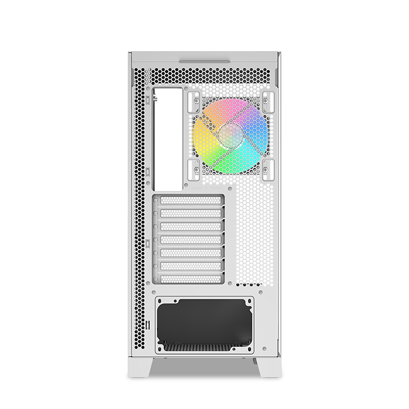 SAMA V50 är ett chassi som kombinerar imponerande estetik med hög funktionalitet. Tack vare dubbla paneler i härdat glas och en avtagbar frontpelare får du en sömlös 270° vy över hela insidan av ditt bygge. Den vita färgsättningen ger ett modernt och rent intryck, perfekt för stilrena setups.