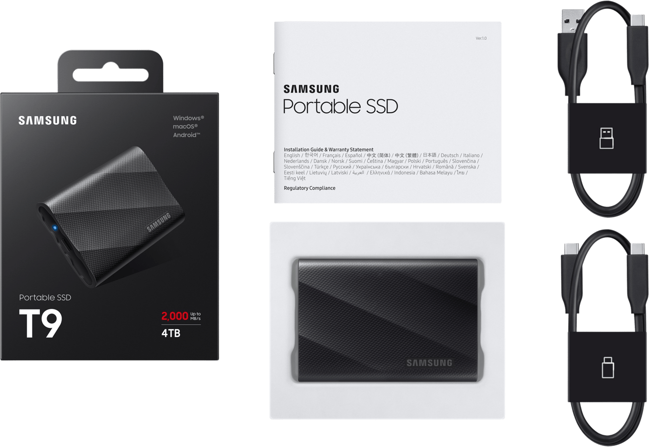 Samsung T9 Black 4TB - USB 3.2 Gen 2x2 - Svart