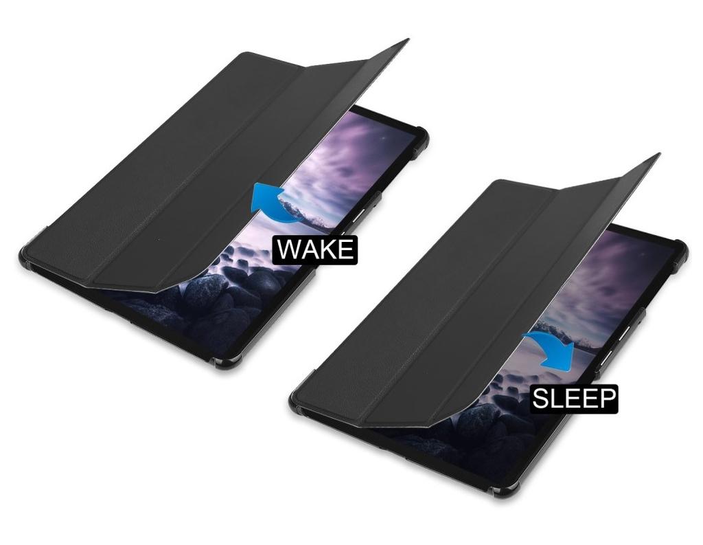 Fodralet har en vikbar konstruktion i tre sektioner som låter dig ställa surfplattan i flera vinklar – perfekt för att skriva, läsa eller titta på film. Det magnetiska locket håller fodralet säkert stängt när det inte används.